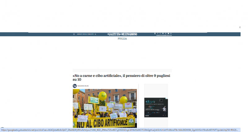 https://www.lagazzettadelmezzogiorno.it/news/puglia/1449132/no-a-carne-e-cibo-artificiale-il-pensiero-di-oltre-9-pugliesi-su-10.html 0 comment 0 FacebookTwitterLinkedinWhatsapp Redazione Articolo precedente L’approvazione de L’Altritalia alle dichiarazioni di Lollobrigida Prossimo Articolo L’Altritalia Ambiente incontra Borgonzoni per i lecci della reggia di Caserta Articoli correlati Caserta: L’Altritalia in campo per la difesa dei lecci della... 7 Febbraio 2026 Caserta: L’Altritalia schierata a difesa dei lecci della Reggia 13 Gennaio 2026 Caserta, L’Altritalia ambiente prende posizione contro la ZTL 16 Dicembre 2025 Convegno a Trieste sui fondali del golfo 15 Dicembre 2025 Giornata Nazionale degli Alberi 2025, volontari de L’Altritalia in azione... 14 Dicembre 2025 L’Altritalia Ambiente incontra Borgonzoni per i lecci della reggia di... 13 Dicembre 2025